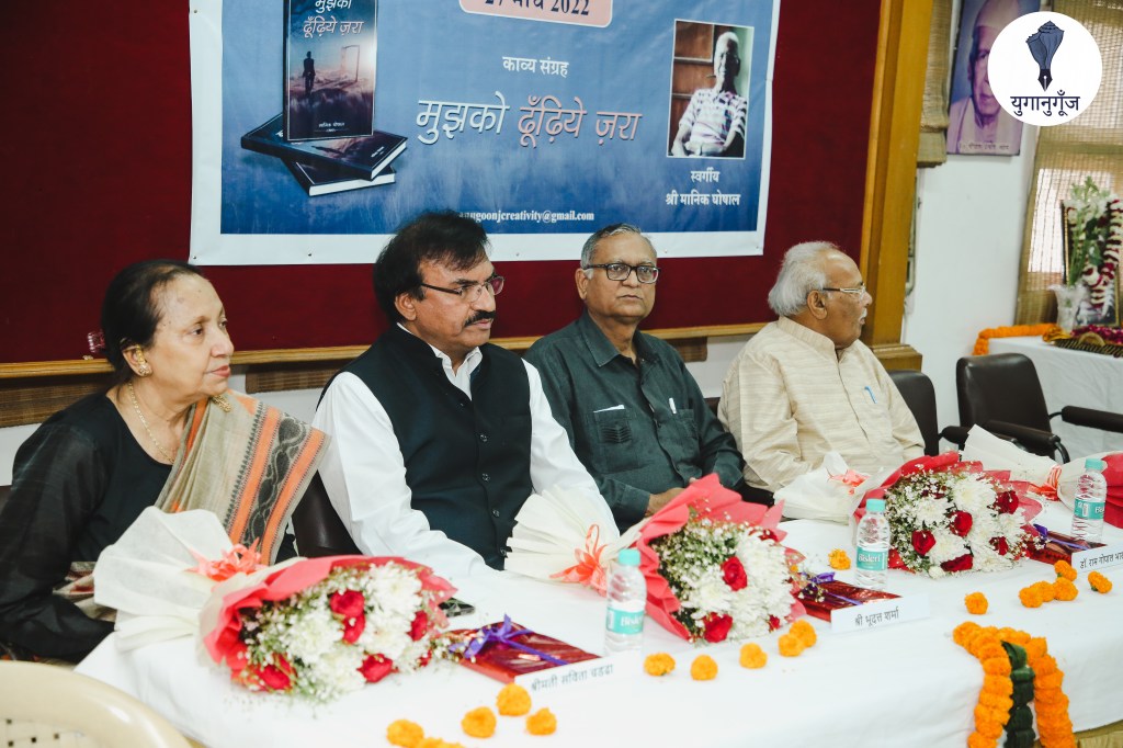 ये केवल एक पुस्तक का लोकार्पण समारोह नहीं था, आत्मा से निकली हुई संवेदनाओं की लहरें थीं जिन्होंने एक औपचारिक समारोह के सारे किनारे तोड़ दिए और सबकी आँखें एक बार नहीं, कई बार भीगीं, सबने काव्य संग्रह “मुझको ढूँढ़िये ज़रा ‘ के रचयिता, हिन्दी और उर्दू भाषाओं पर ज़ोरदार पकड़ रखने वाले, लखनऊ में जन्मे, प्रयागराज में पले-बढ़े कवि और शायर स्वर्गीय श्री मानिक घोषाल को हृदय की गहराईयों से याद किया, उनकी लिखी हुई कुछ रचनाओं का पाठ किया, उनके विचारों को आत्मसात किया।